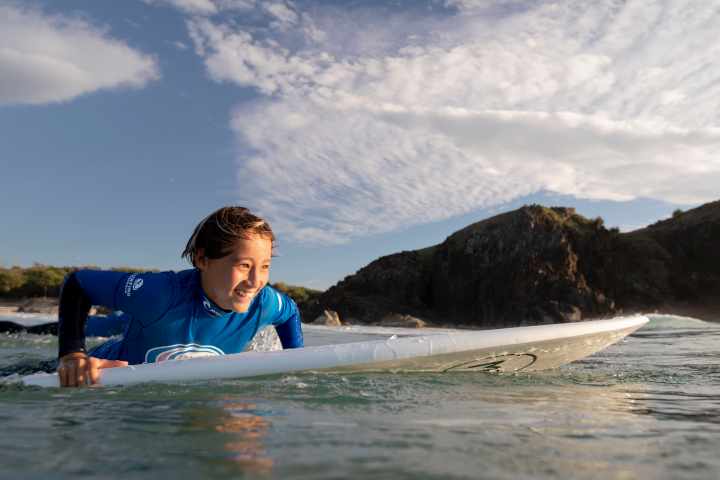 nudie SurfGroms adopts an approach to learning that uses group-based games to not only equip your child with the skills they need to surf and/or SUP, but also to encourage their participation by having fun. Every nudie SurfGroms lesson is designed purposefully to create a positive and supportive learning environment.